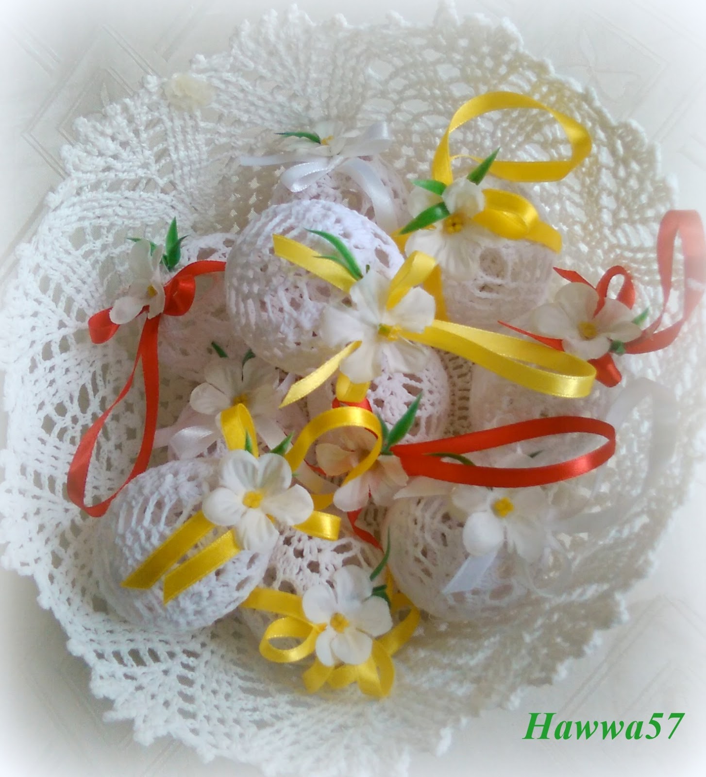 Wielkość jajeczka zależy od grubości niteczki i uzytego szydełka. Mnie zależało, aby były to jajeczka mniej więcej zbliżone do wielkości jaj kurzych. Gdybym robiła ściśle według schematu jajo byłoby za duże.