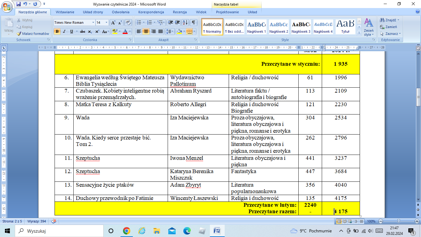 Wyzwanie czytelnicze 3 660 stron w 2024 LUTY